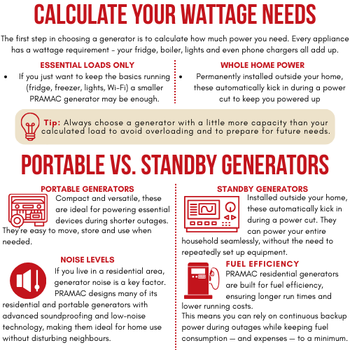 At EGM | Portable Power, we supply a wide range of PRAMAC residential generators and portable generators in the UK, designed to provide dependable home backup power when you need it most. But how do you know which generator is right for your household?